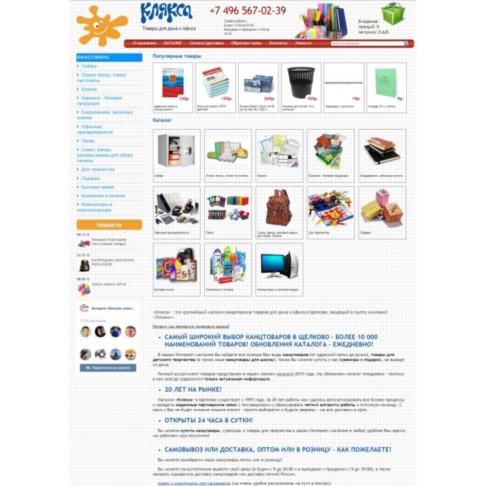 Интернет-магазин канцелярских товаров Клякса от веб-студии Максвебсайт г. Краснотурьинск