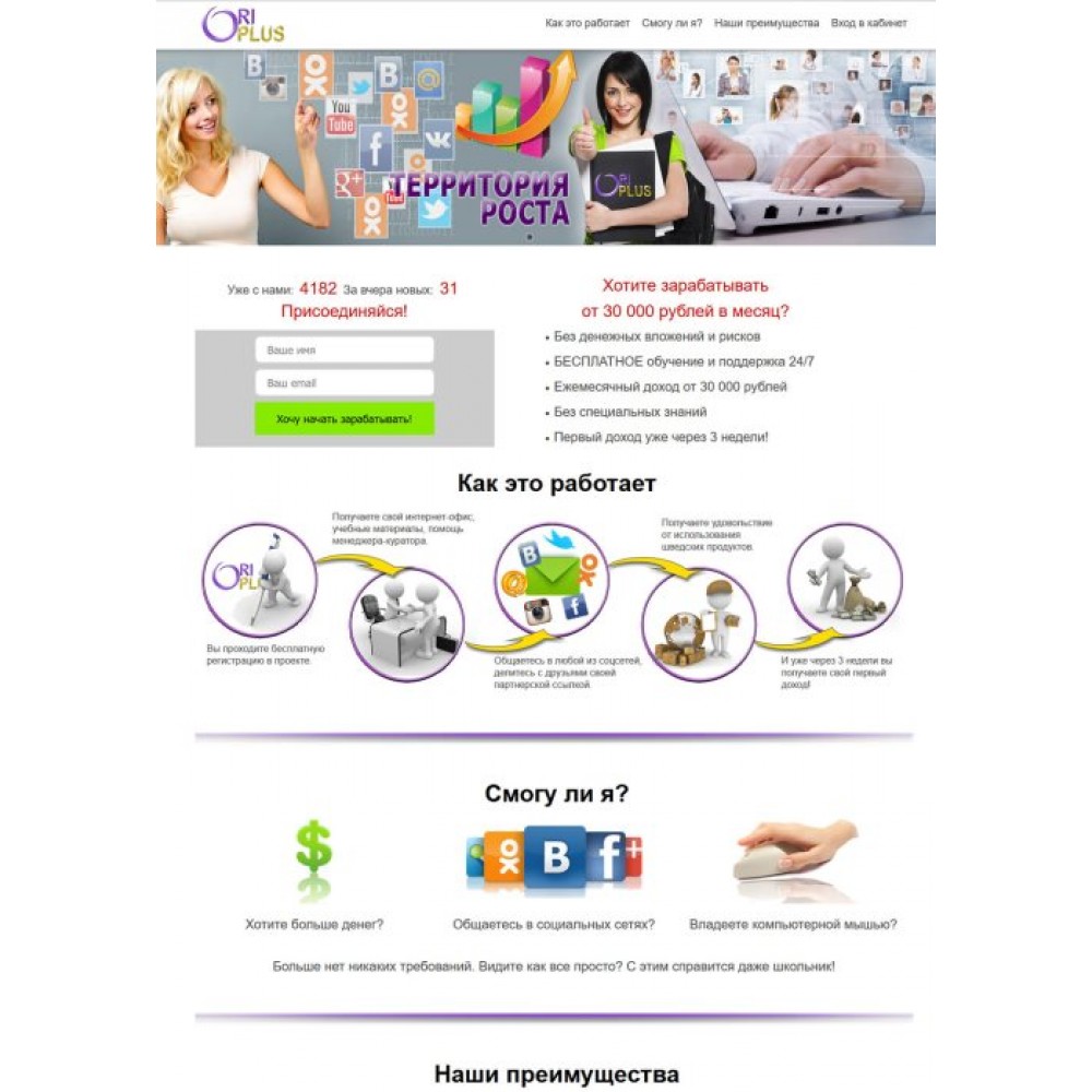 Лендинг с обучающим кабинетом для менеджеров Орифлейм от веб-студии Максвебсайт г. Краснотурьинск