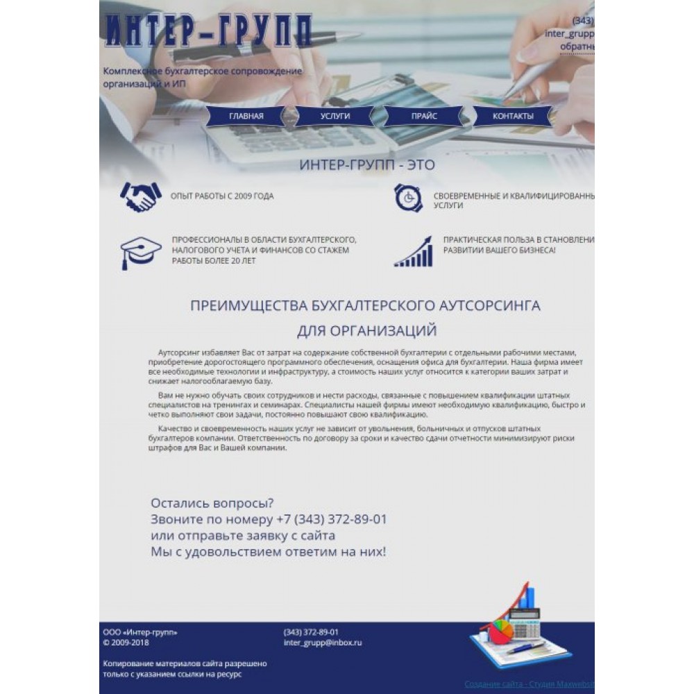 Сайт-визитка бухгалтерской компании г.Екатеринбург от веб-студии Максвебсайт г. Краснотурьинск